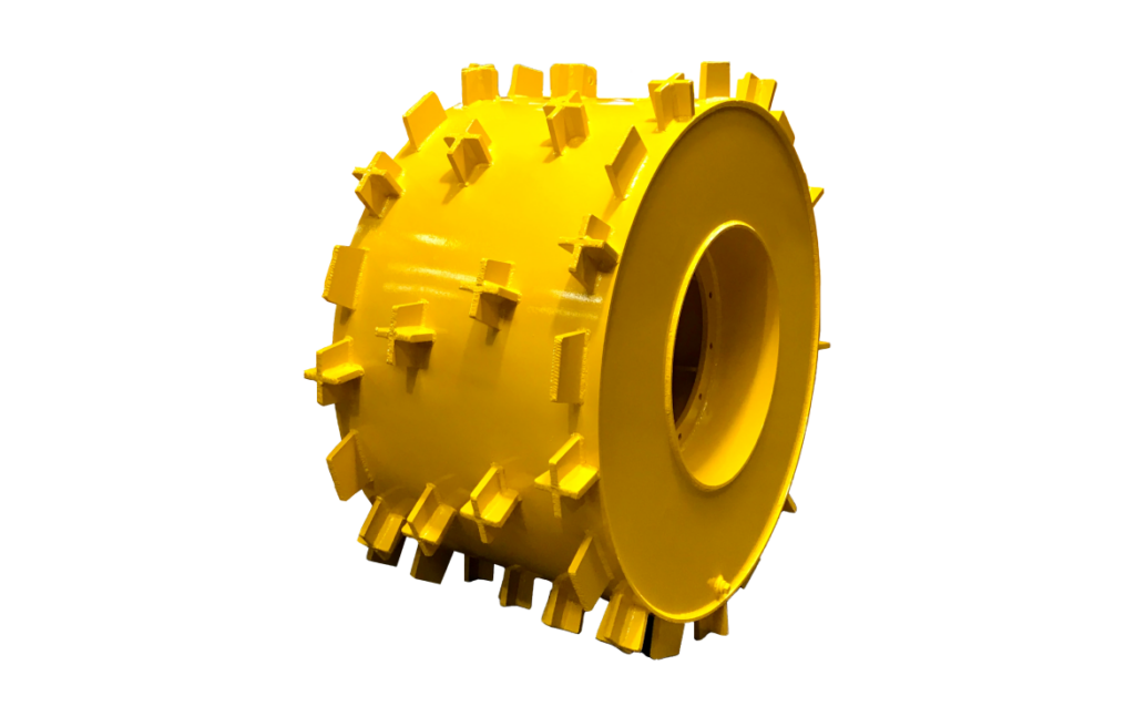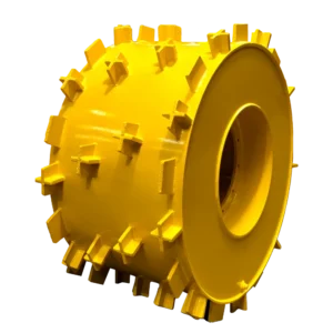 Rueda pata de Cabra: ruedas compactadoras aplicables a tractores y palas viales para compactación, ideal para manejo de basurales municipales, vertederos a cielo abierto y manejo de rellenos sanitarios garantizando el desplazamiento seguro y eficiente en diferentes tipos de terreno.