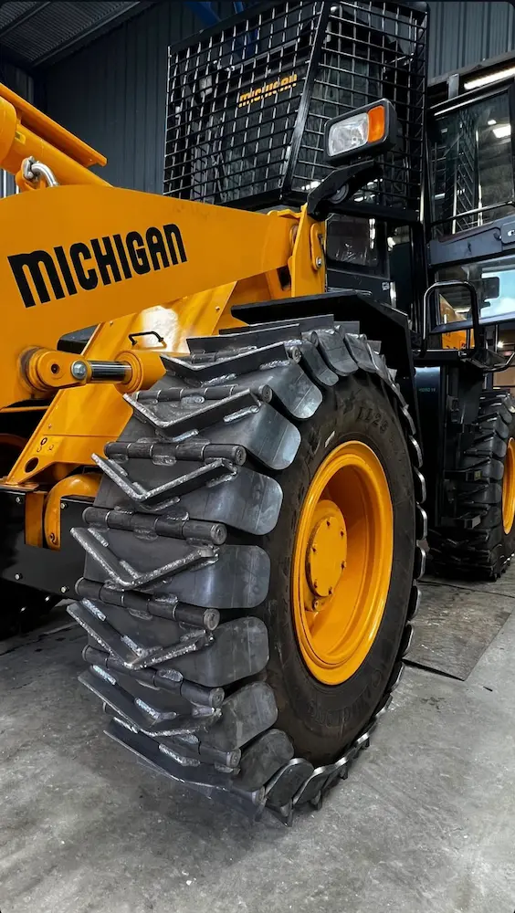 construidos en chapa de 1/2″ o 5/8″ de espesor, bujes de acero de 42 mm. de diámetro, pernos (ejes) de Acero 1045 de 25 mm. de diámetro, tacos de Acero 1045 de 5/8″ x 1 3/4″; con medio eslabón extra para hermanar.