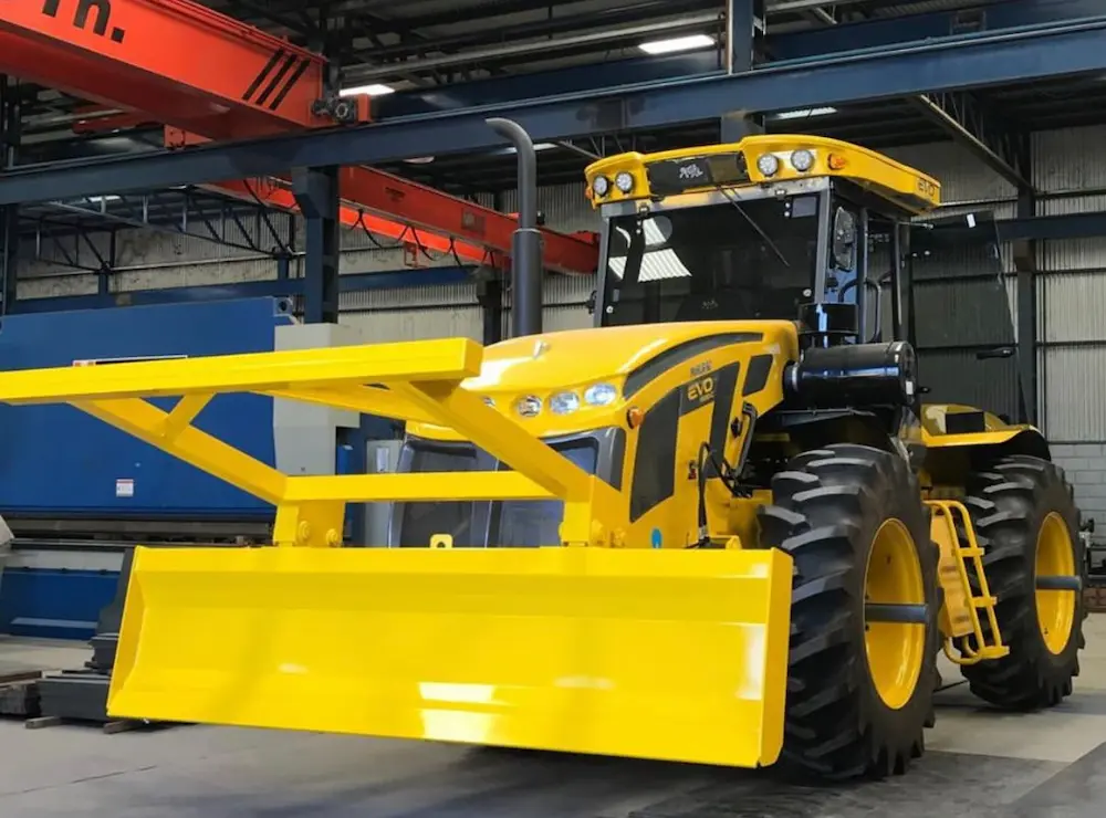 Hoja Topadora de 3 mts. de ancho, completa con montantes para adherir al chasis, cilindros (4″ x 285, con vástago de 50 mm.), cañerías y mangueras hidráulicas. Altura máx. de Levante 1,25 mts. Opcionales: Baranda superior, paragolpe desmontables, rastrillo inferior