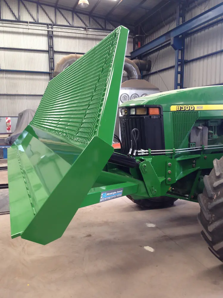 Topadora Silera de 3,50 metros de ancho y 60 cm de altura más rejilla superior de 60 cm. Cilindros hidraúlicos(4″ x 285, con vástago de 50 mm.), Opcionales: Alas plegables manuales o Hidraulicas.