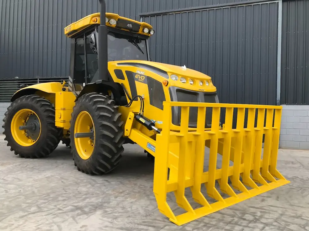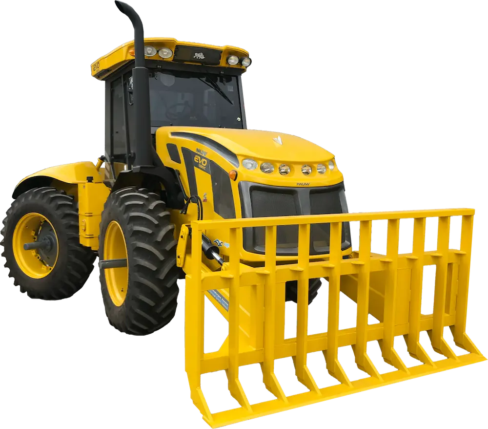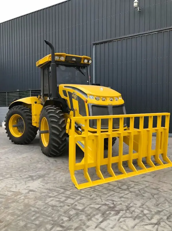 Rastrillo De 2,70 mts de ancho por 1 mts de alto. Con púas de planchuela de 1″ x 4″ soldadas sobre un marco de doble hierro UPN de 100 mm, cuchilla de 3/4″ x 6″ de acero 1045. Brazos plegados de 6 mm con refuerzo interior de 3,2 mm. Cilindros de 4” x 285 mm, con vástago de 50 mm. Cañerías y mangueras hidráulicas. Altura máxima de levante 1,65 mts.Opcional: Paragolpe desmontable de 1,50 mts de largo por 2 mts de ancho construido en doble hierro UPN de 100 mm.