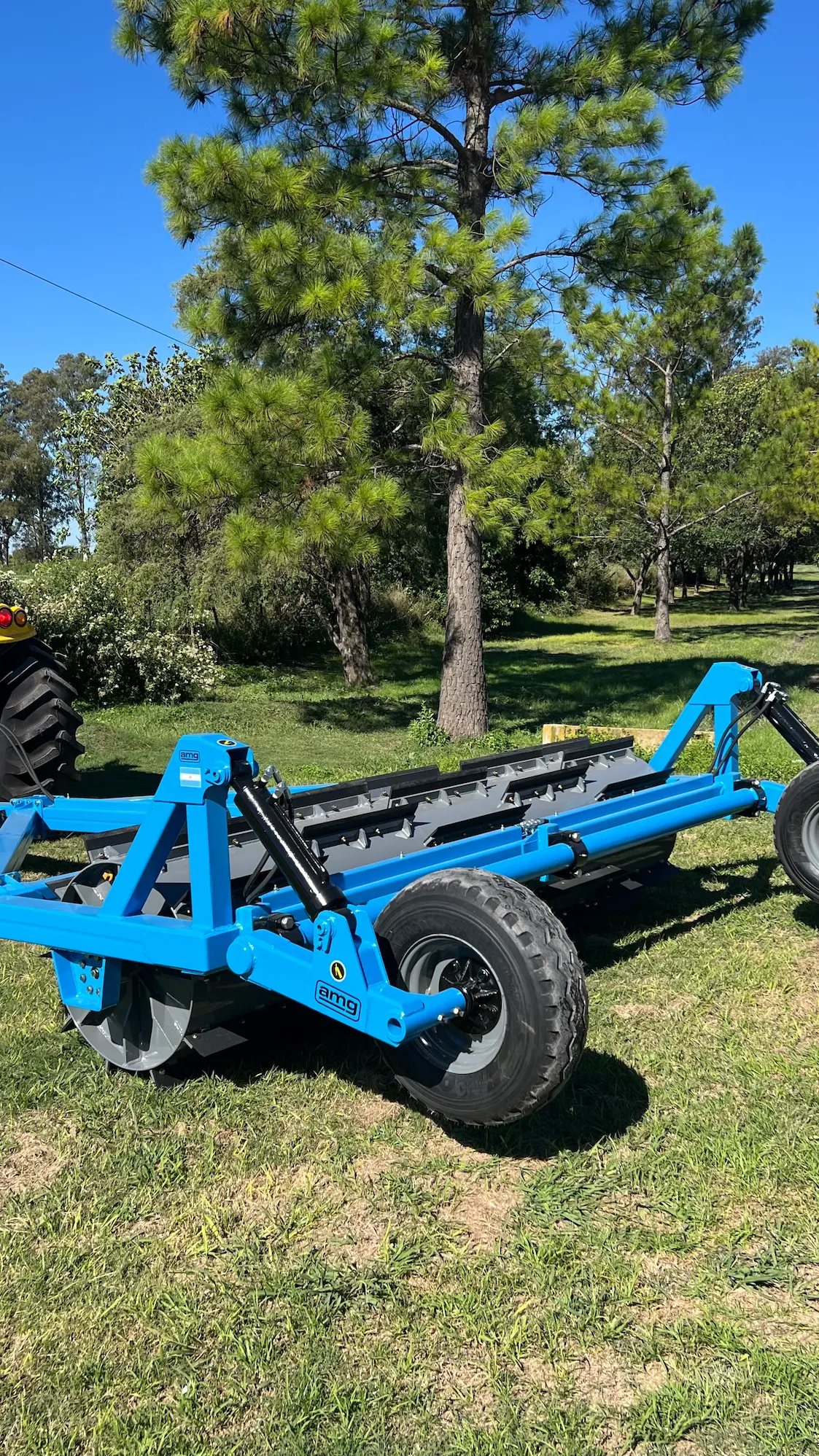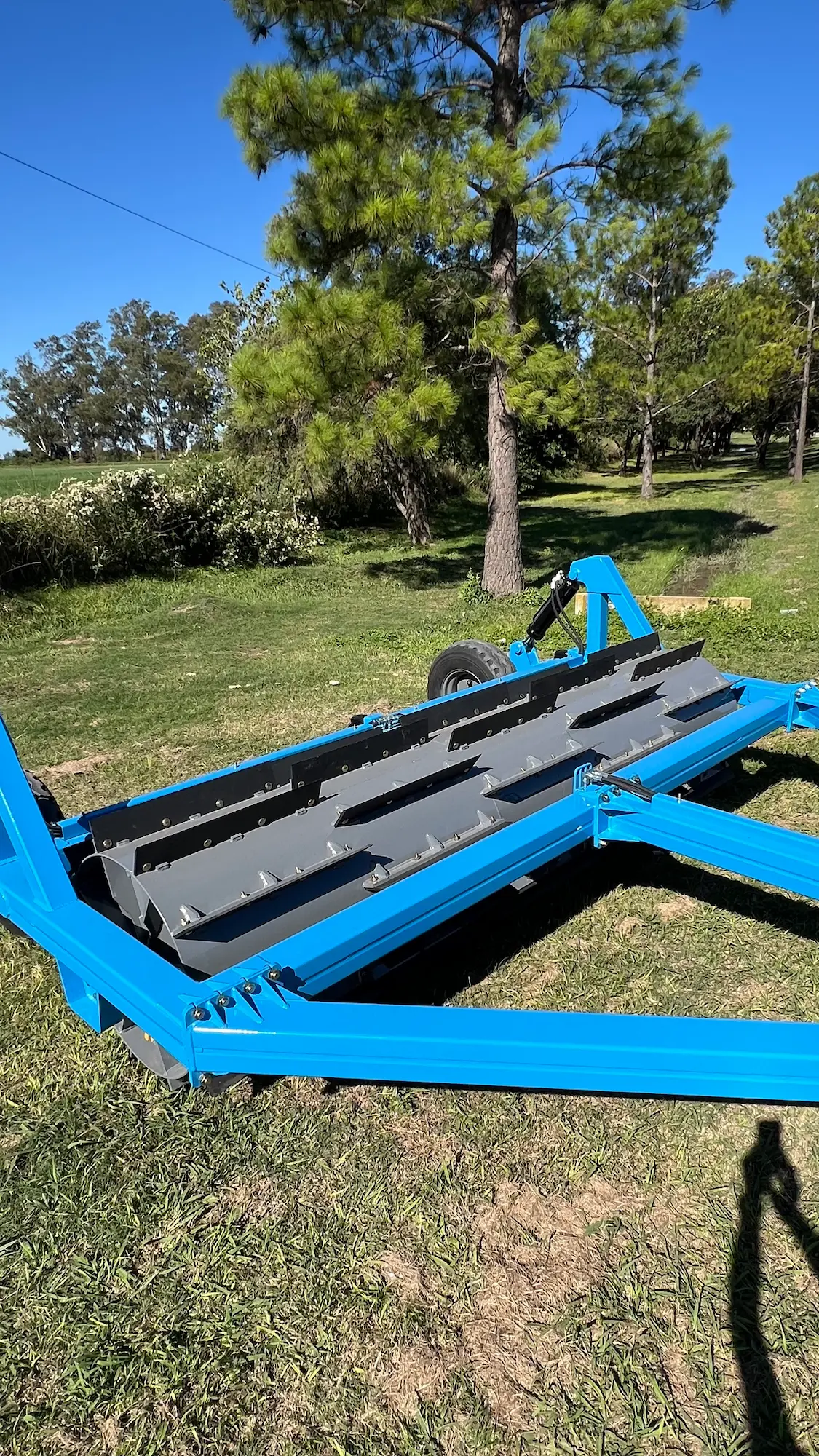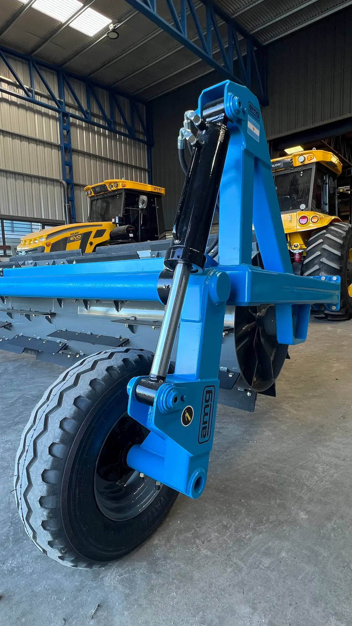 Rolo multipropósito de 0.80 mts de diámetro de tambor construido chapa de 8 mm; ejes de 76 mm con bancadas de Acero con rodamientos oscilantes a rodillo; cuchillas cambiables de acero boro de 150×9,2×750 mm, Chasis y lanza de TUBO de 160 x 4,75 x 140 mm. Con Cubiertas incluidas, sistema de transporte hidráulico con rodado 11L 16