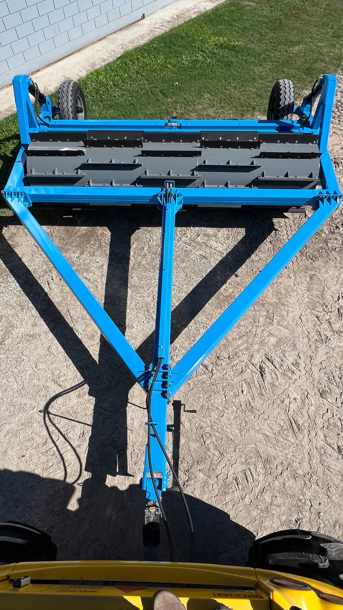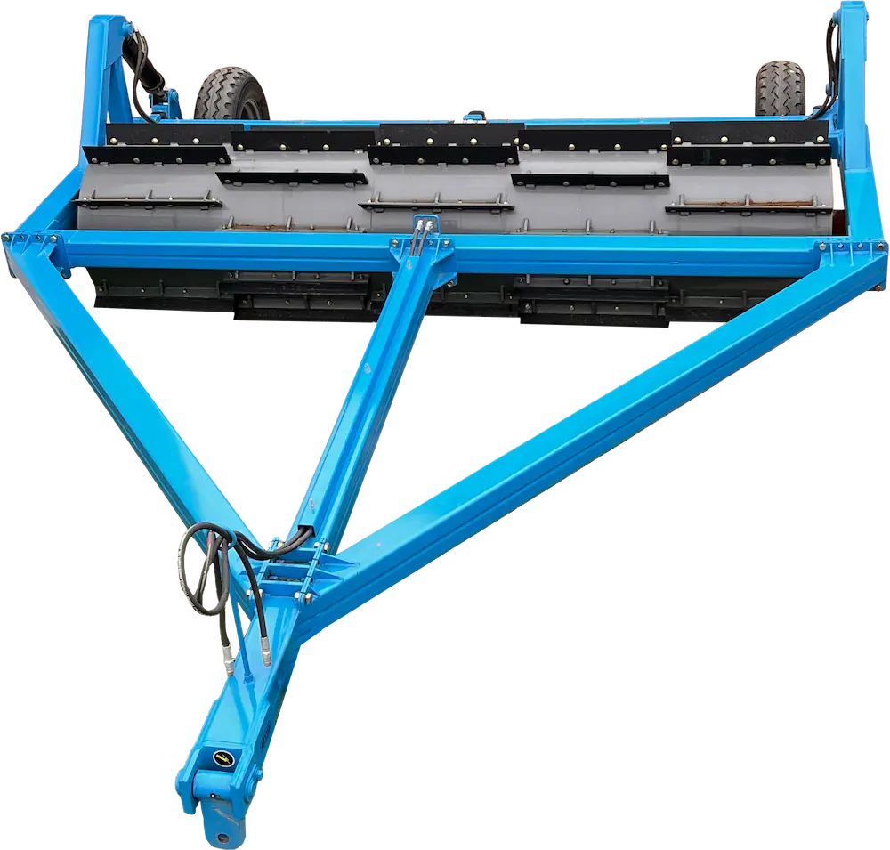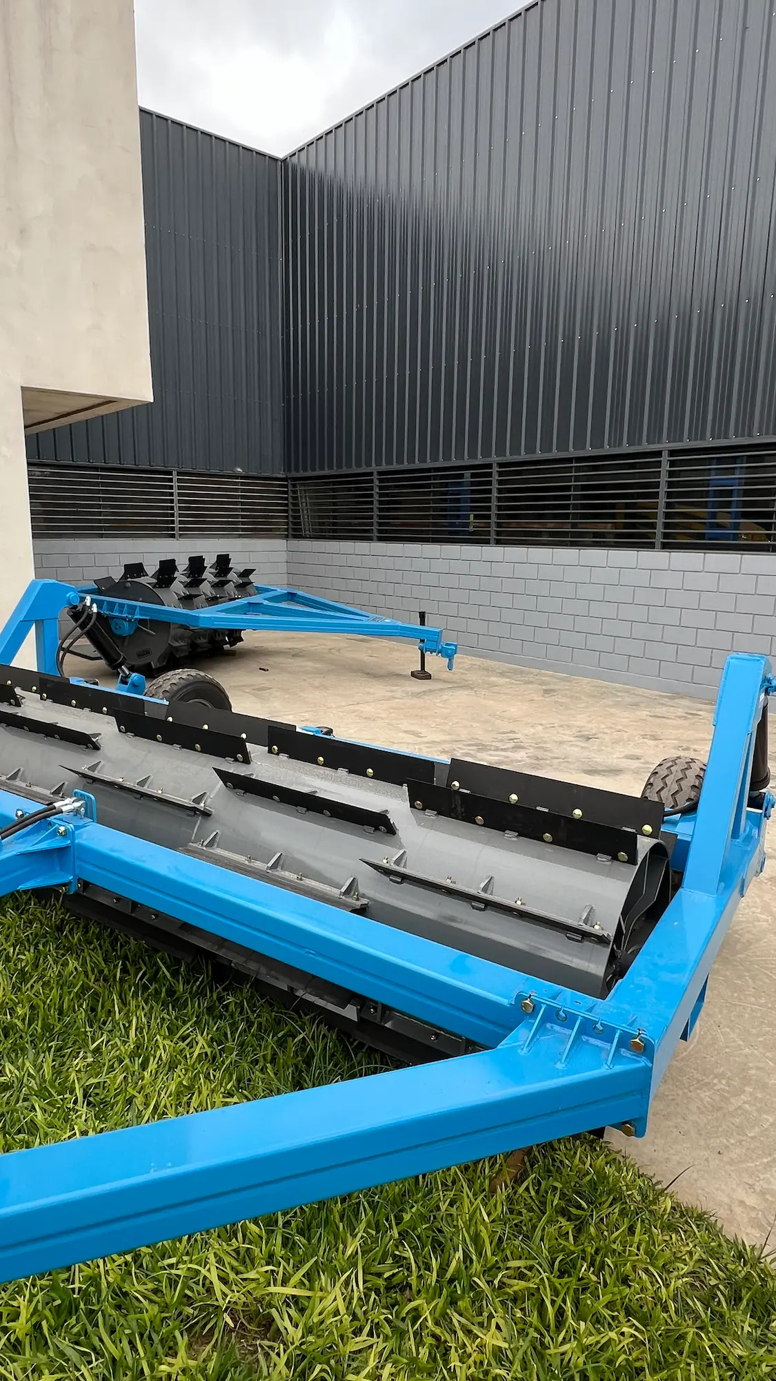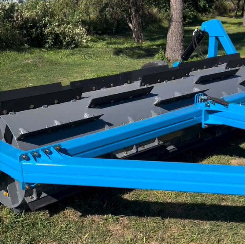 Rolo multipropósito de 0.80 mts de diámetro de tambor construido chapa de 8 mm; ejes de 76 mm con bancadas de Acero con rodamientos oscilantes a rodillo; cuchillas cambiables de acero boro de 150×9,2×750 mm, Chasis y lanza de TUBO de 160 x 4,75 x 140 mm. Con Cubiertas incluidas, sistema de transporte hidráulico con rodado 11L 16